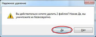 На вопрос, действительно ли мы хотим уничтожить эти файлы, отвечаем положительно. И ждем окончания процедуры надежного удаления файлов, после чего нажимаем «Ок».