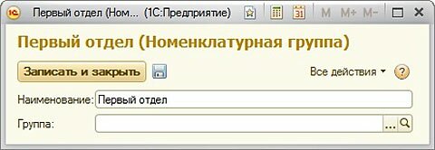 Сразу же создадим еще одну группу и назовем ее «Второй отдел». После проделанных операций наш справочник номенклатурных групп будет включать в себя две группы.