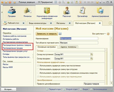 Нас интересуют разделы «Распределение приемки товаров» и «Распределение продаж», ссылки на которые находятся в панели навигации карточки магазина.