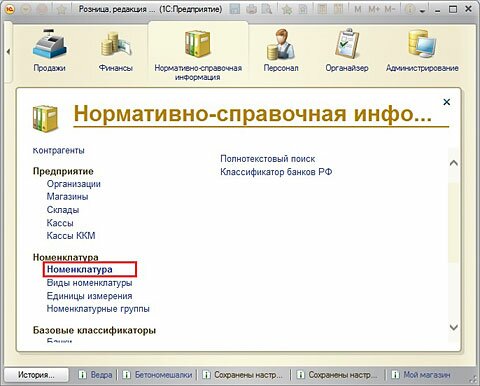 Каким образом происходит распределение, я расскажу в другой раз, когда мы будем рассматривать приход товаров. А сейчас давайте разберемся, что такое группа номенклатуры, которую часто путают с номенклатурной группой. Давайте снова перейдем в раздел «Нормативно-справочная информация» и откроем справочник «Номенклатура».