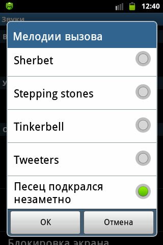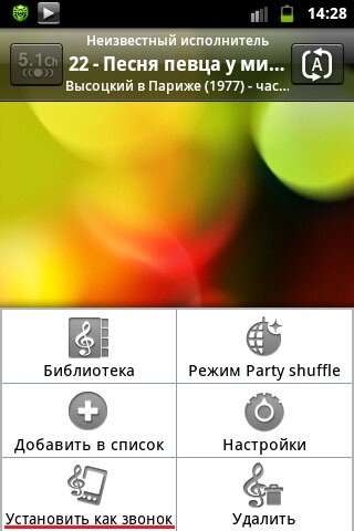 Ответ: С мелодией вызова все просто. Запускаем нужную мелодию в плеере, идем в опции и выбираем «Установить как звонок».