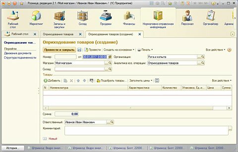 Теперь вы умеете оприходовать товары. В следующий раз я расскажу, как вносить в информационную базу остатки денежных средств.