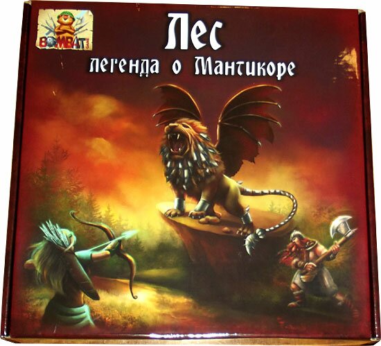 Коробка выглядит вполне симпатично. На крышке изображена сама Мантикора и парочка героев, пытающаяся ее завалить. Правда, облик чудовища взят скорее из компьютерных игр, чем из реальной мифологии.