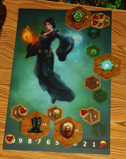 Картонные фишки персонажей также напоминают фишки из «Андора». Вот у них картон как раз прекрасный. Оформление тоже на уровне.