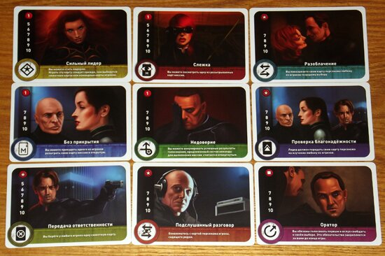 Как я уже говорил, в комплект также входит дополнение «Закулисные войны». Оно добавляет в игру сюжетные карты, которые постепенно вводятся в игру лидером и раздаются выбранным им по своему усмотрению игрокам.