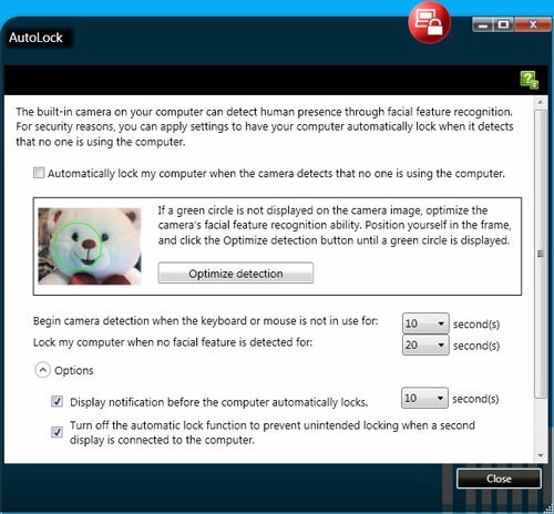 После включения функции автоматической блокировки приложение начинает отслеживать состояние клавиатуры и мыши (либо заменяющих ее устройств). Если в течение определенного промежутка времени (по умолчанию — 10 секунд) с устройствами ввода не производится никаких действий, веб-камера включается и проверяет наличие пользователя за компьютером.